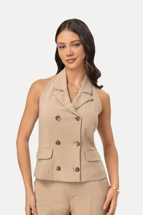 - Chaleco halter con escote sastrero
